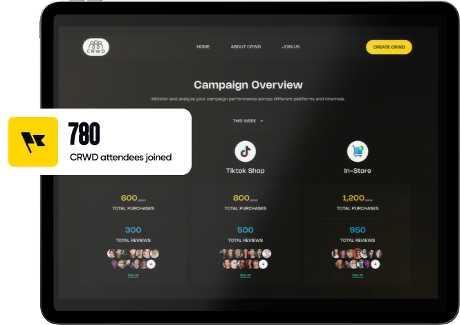 Stay updated on your CRWD’s progress with live status updates. Track task completions and monitor performance instantly.